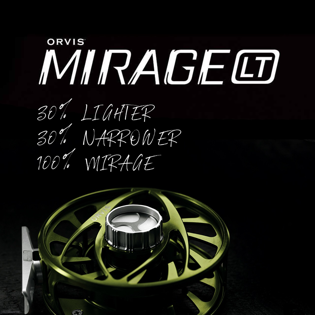ライトラインロッドとトラディショナルなフライリールの組み合わせは美しく、バランスよく出来ています。しかし、時として大物トラウトに低番手ラインに細いティペットで挑まなくてはならい状況では、近年の滑らかなディスクドラグ搭載のラージアーバーリールの性能が望まれる場合があります。新登場のミラージュLTリールは、従来のミラージュリールに比べて30%軽量でかつ30%狭いスプール幅になっているのでライトラインロッドにもバランスよく違和感なく組み合わせることが出来ます。しかもミラージュリールの持つ滑らかなドラグ調節や、巻き取りが早く巻き癖もつきにくいラージアーバーリールの利点はそのままに、デザインやバランスさらに性能とすべてがそろった、最先端のライトラインリールです。