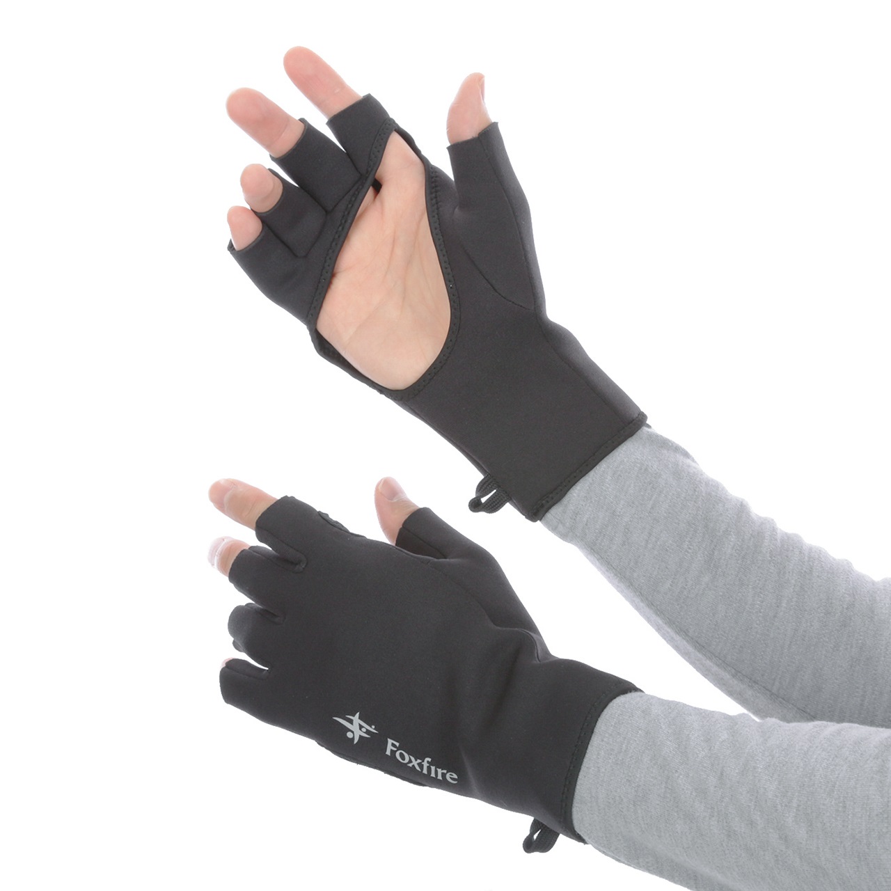 水濡れに強く、濡れても保温性を保持する1mm厚クロロプレン製の防寒グラブ。フィッシングロッドを握った際に、手のひらに当たる部分のみを切り抜き、手のひら感覚と防寒の両立を図っています。ロングカフス/カラビナなどを通せるループを付属。