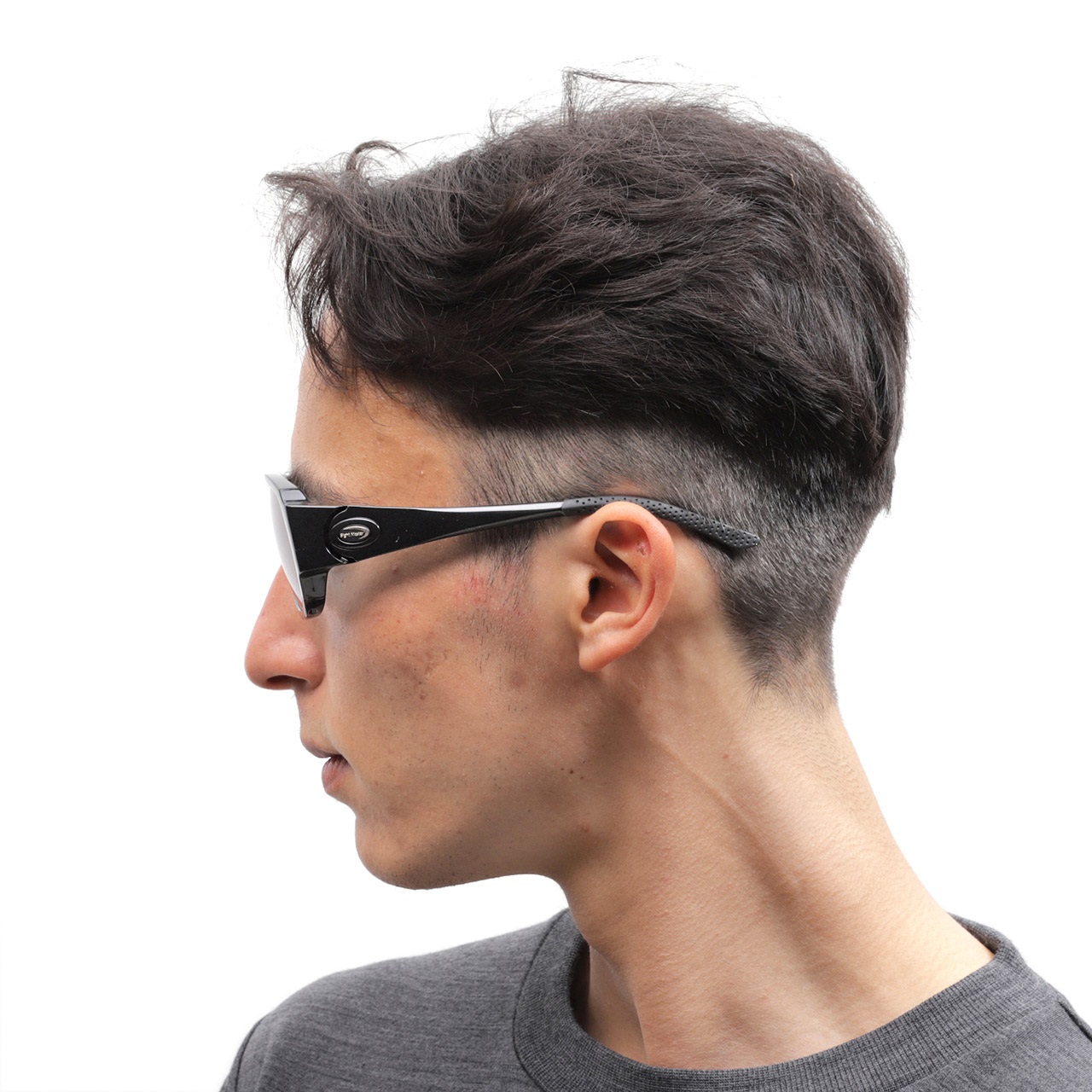 フィッシングシーンでの過酷な環境からアングラーの目を守りたい。できる限り光の侵入を遮りたい。光と対峙するフロント部の面積を増やし、人間の眼球軌道を広くカバーする実用性重視の”ティアドロップ“タイプ。キャップ着用時に邪魔にならない太さにデザインされたテンプルはサイドからの光の侵入を抑えます。樹脂製フレームを採用することでサイトマスターらしくスポーティに仕上がりました。