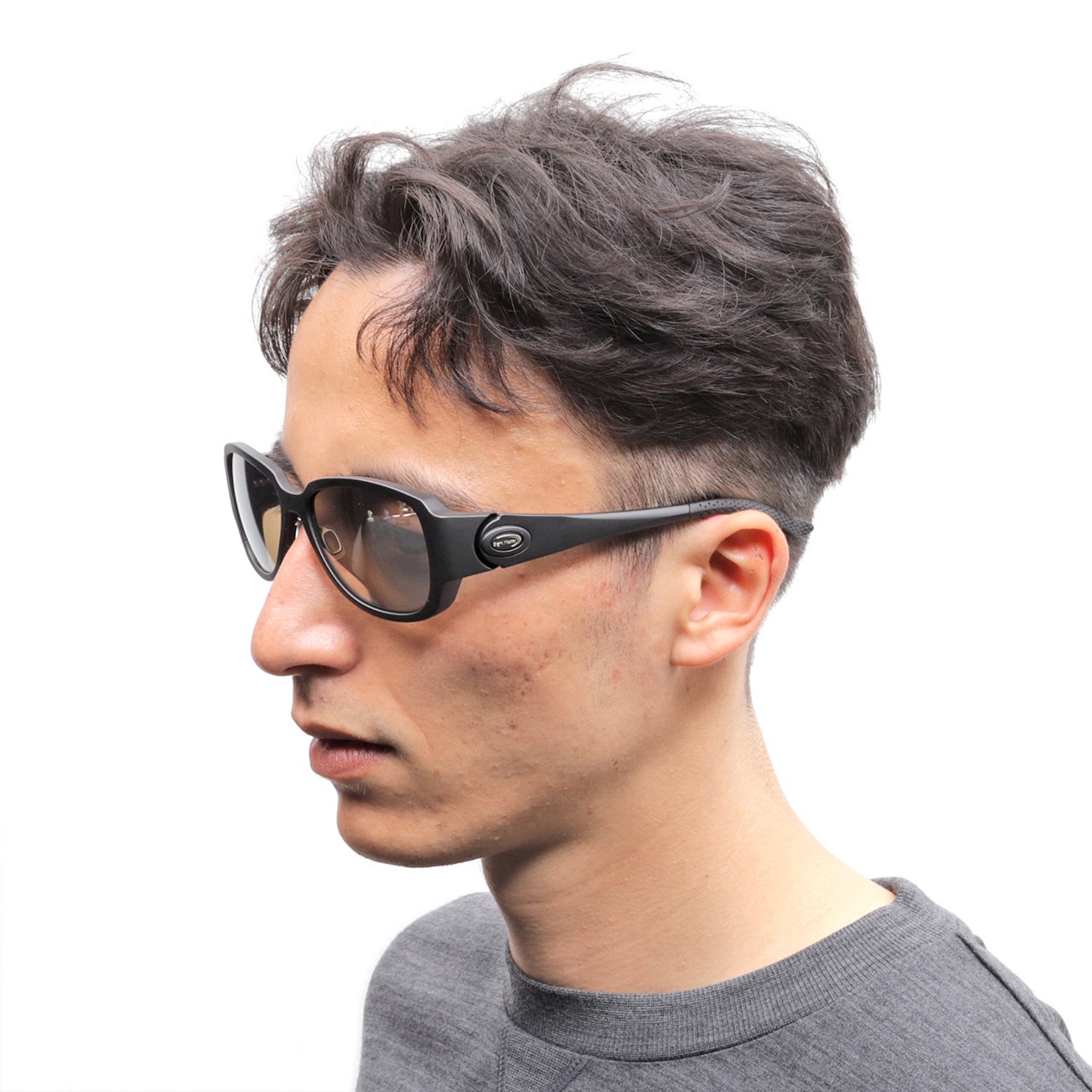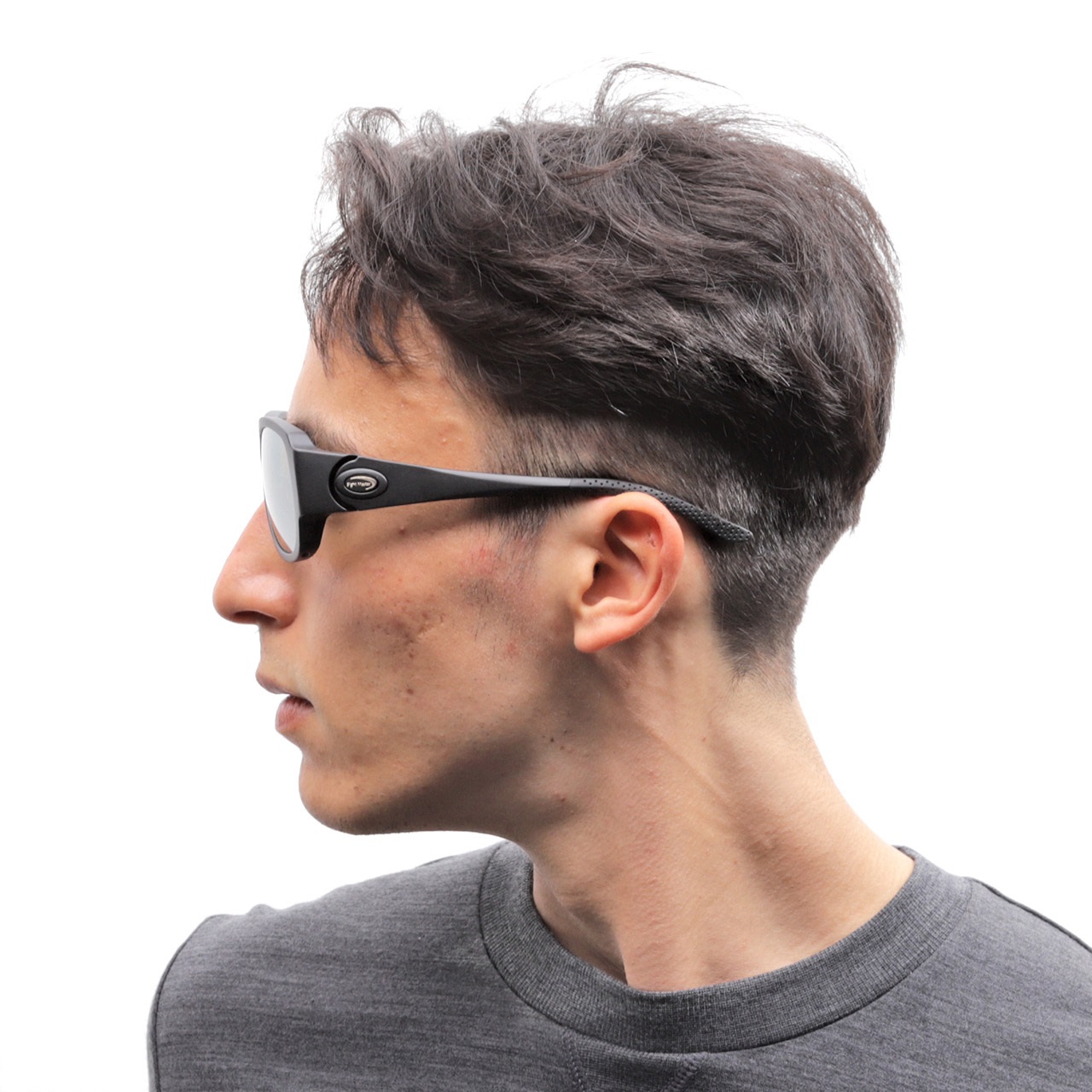フィッシングシーンでの過酷な環境からアングラーの目を守りたい。できる限り光の侵入を遮りたい。光と対峙するフロント部の面積を増やし、人間の眼球軌道を広くカバーする実用性重視の”ティアドロップ“タイプ。キャップ着用時に邪魔にならない太さにデザインされたテンプルはサイドからの光の侵入を抑えます。樹脂製フレームを採用することでサイトマスターらしくスポーティに仕上がりました。