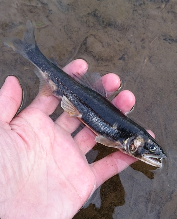 以前もこのティムコ・ホームページの『カブちゃんの北の便り』シリーズで書いたのですが、北海道の南部では、秋に入ると産卵を終えたアユが生命を全うし、力尽きて川の流れに押し流されていきます。