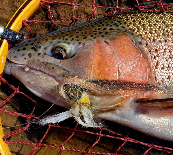 そして、フックは必ずワイドゲイブで強いのものをご使用下さい。殆どのニジマスが、その重たくなった腹が邪魔をするのか、水面を割って飛び出すシャープなジャンプなどは望むべくもなく、ひたすら超トルクフルな引きをみせます。そんな重たい魚とのファイティングであっても、そもそもが『ソルトウォーター対応』として剛性が高いTMC8089Nフックを使われると、多少強引であっても安心して寄せることができます。
