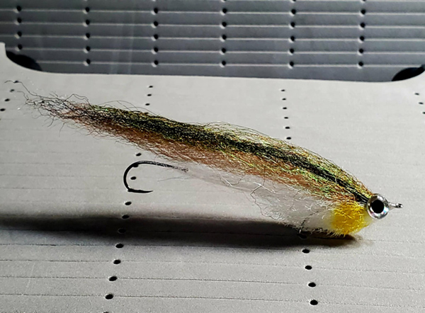 この落ちアユを模した釣り、以前は少し大ぶりに巻いたダークオリーブ&ホワイトを組み合わせたゾンカーやバニーリーチで十分釣りになっていました。他にも、スードヘアーを使ったストリーマーも使ったけれどナチュラルに流すとシルエットが崩れるので最後はやはりタイイングの手軽さも手伝って、重くて投げ難いけれどゾンカーに落ち着きました。
