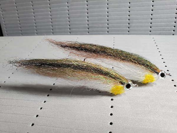 ボクのパターンでは『スカルピン フラッシュヘアー』を重ねて柔軟性エポキシでシルエットを整え、油性マジックで着色したモノを使っています。(フライの長さがあるので、トレーラーフックにしています)