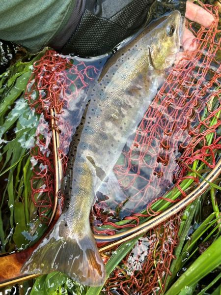 この魚は生まれてからどのように生きてきたのだろうか。聞きたい事は沢山あったけど、魚が弱る前にリリースしなければと思い急いで写真を数枚撮り、元いた流れに戻っていただきました。